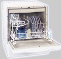 Another space saving choice is the Haier countertop model # HDT18PA. This unit is 17.3 x 19.5 x 21.2 inches and weighs only 42 pounds. Packed into its small size, you can wash up to 4 place settings. Interior includes heavy duty removable lower rack, upper half-folding rack and plastic interior. Features include 3 wash cycles, wash/dry indicator light and electronic touch pad controls.